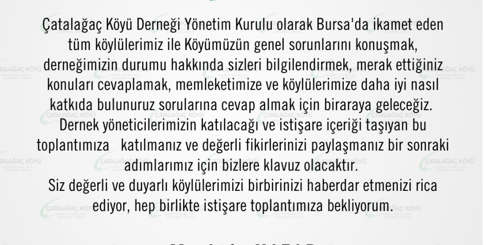 ÇATALAĞAÇ KÖYÜ DERNEĞİ’NİN 5. OLAĞAN GENEL KURULU YAPILDI